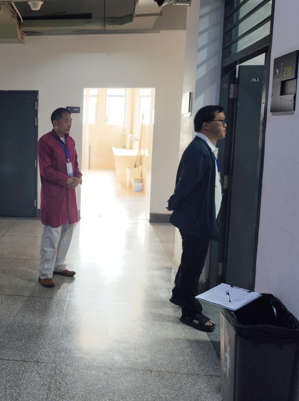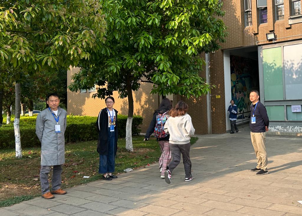 必一运动督导督查组成员提前10分钟在设计楼下督查
