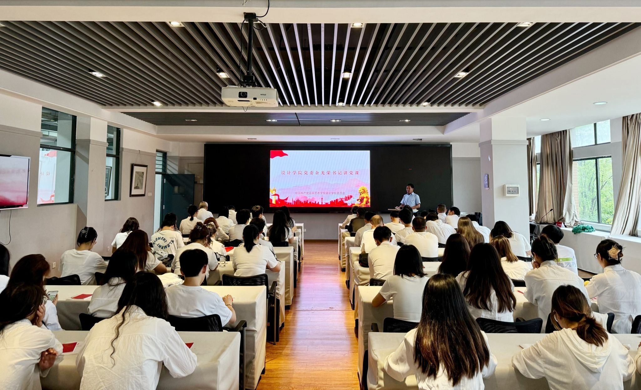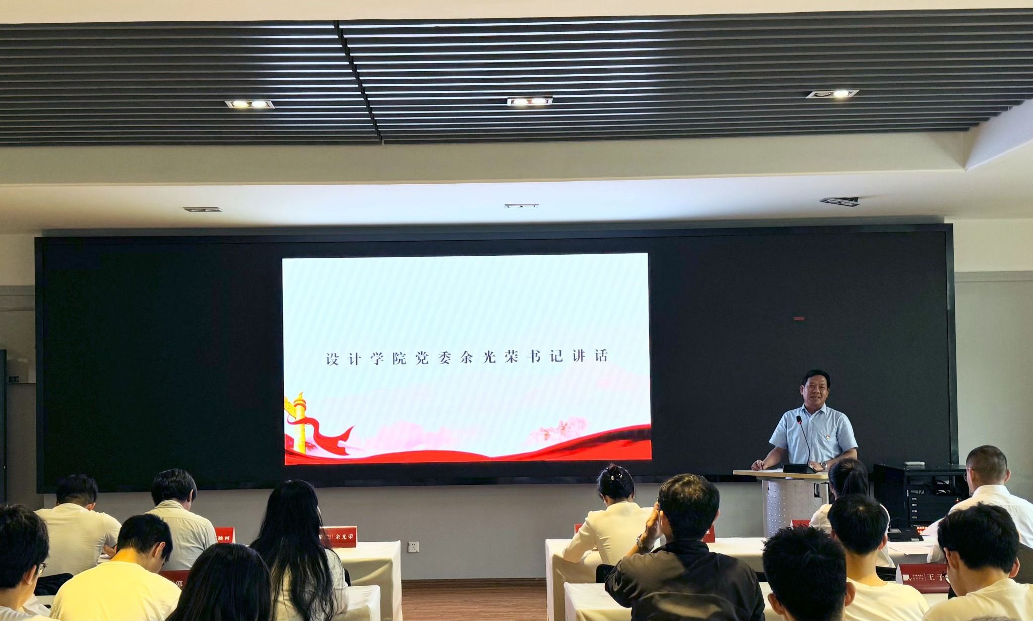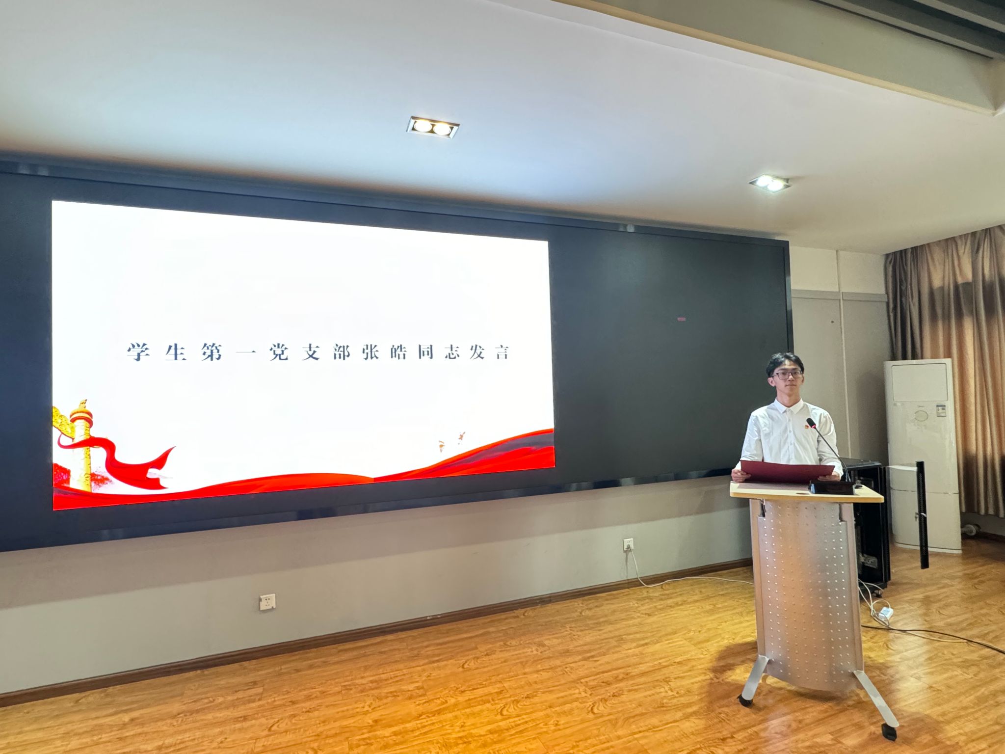 新发展的本科生党员代表张皓同志在发言中分享了入党发展对象培训期间学习《中国共产党章程》和《中国共产党纪律处分条例》的思考。表示要牢记习近平总书记殷切嘱托,承强国之志,争当奋进青年,发扬设计为人民服务的传统,在推进强国建设、民族复兴伟业中展现青春作为、彰显青春风采、贡献青春力量,奋力书写为中国式现代化挺膺担当的青春篇章。