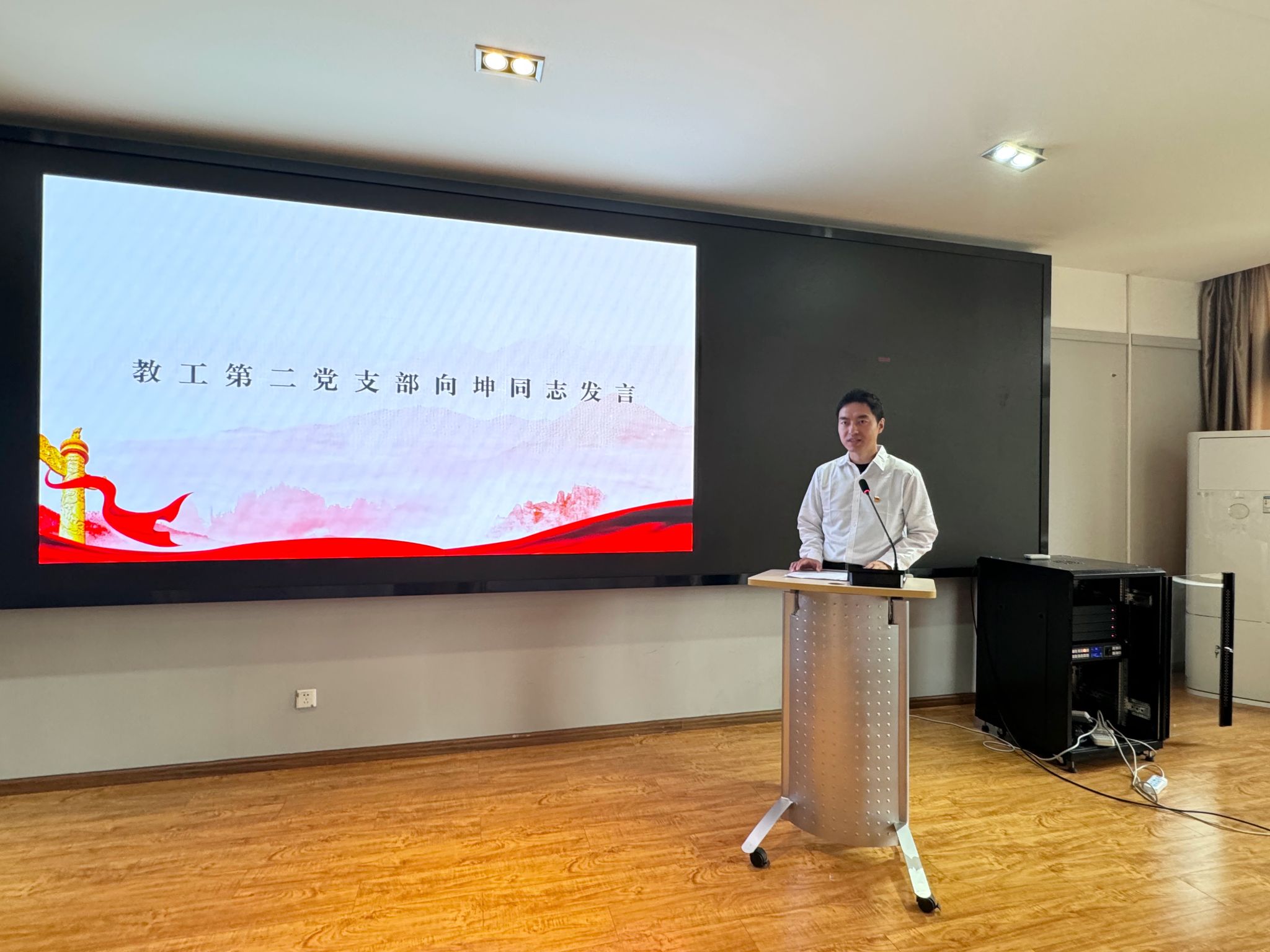 新发展教师党员向坤同志在发言中深情回顾了争取加入党组织过程,为自己能成长在如此美好的时代,能遇到如此多的良师益友而感到庆幸。他表示,要深入学习习近平总书记对全国优秀教师代表的致信,以教育家为榜样,大力弘扬教育家精神,牢记为党育人、为国育才的初心使命,树立“躬耕教坛、强国有我”的志向和抱负,自信自强、踔厉奋发,为强国建设、民族复兴伟业作出新的更大贡献。