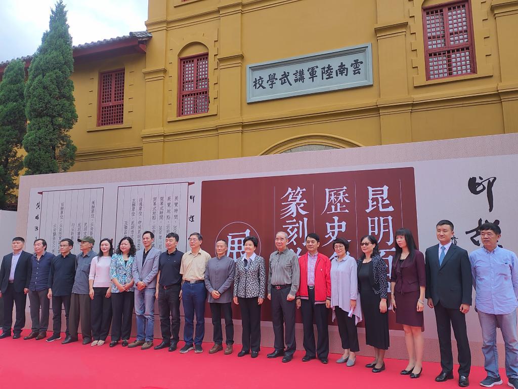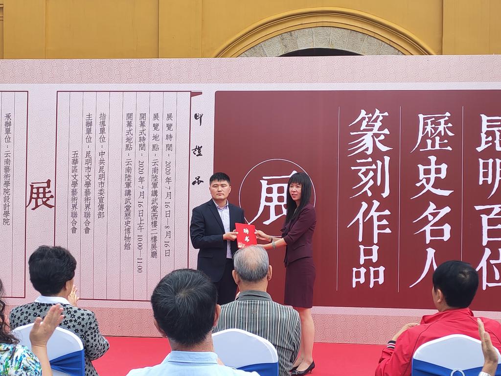 7月16日上午,公司青年教师龚栋强个展“印证昆明——昆明百位历史名人篆刻作品展”在云南陆军讲武堂历史博物馆隆重开幕。此次展览由中共昆明市委宣传部指导,昆明市文学艺术界联合会、五华区文学艺术界联合会主办,必一运动承办。出席开幕仪式的嘉宾有云南省人大常委会原副主任晏友琼、云南省政协教科文卫体委员会副主任吴卫民、云南省政协文史委副主任郑明、云南省文联党组书记、主席李勇、昆明市委宣传部副部长曾华、昆明市政协原副主席夏静、昆明市社科联主席龚志龙、长城书画院经理王永银等领导及专家。云南艺术公司党委书记黄雁玲、党委副书记李从熙、副经理陈劲松、必一运动官网公司党委书记余光荣、党委副书记王进、何永坤教授等公司老师出席了展览开幕式。