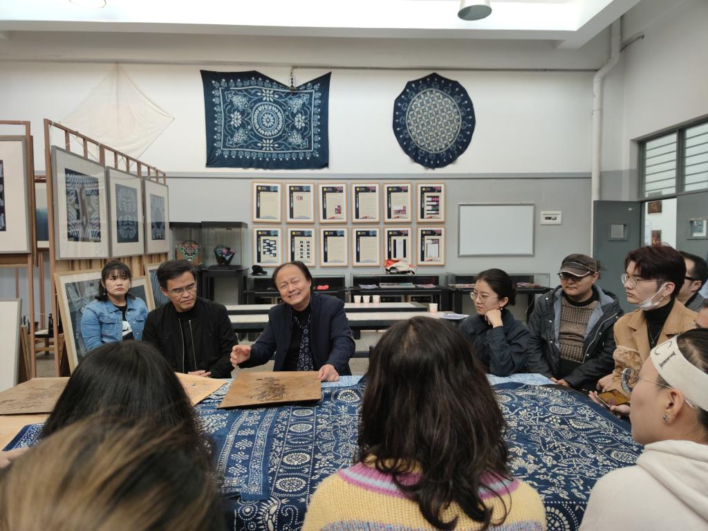 讲座中吴元新教授动情讲述了40年来,他通过自身的不断努力,重新拾起几乎从历史舞台退出的蓝印花布,收藏、抢救、传播、制作、创新、研究,终于留住了蓝印花布的古老技艺。他通过创办博物馆,建立明清染房,出版专著,进行人才培养等,使蓝布印花得以活态传承,历久弥新。他在传承的基础上赋予蓝印花布以新的活力,推出了各式各样满足当代人审美取向和生活需求的新的日用品、家居饰品、工艺摆件等作品,极大促进蓝印花布印染技艺的传承发展。