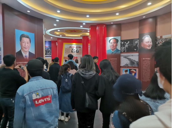 踏着先烈们的足迹,全体党员师生、团学干部用心观看党建长廊,重温了中国共产党领导全国人民进行新民主主义革命建立新中国的峥嵘岁月。从中国共产党成立到南昌起义,从井冈山胜利会师到万里长征,从延安的艰苦奋斗到抗日战争的胜利再到新中国的成立,无数革命先烈、仁人志士用鲜血和生命铸就的红船精神、井冈山精神、长征精神、抗战精神、延安精神,穿过历史的云烟,依然传递出强大的理想信念力量,触动着现场每一位党员师生、团学干部的心灵。