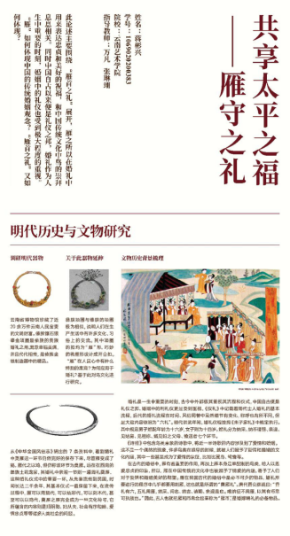 如今,选择从这具有意义的历史时代作为切入,以小见大,以古鉴今,从微观层面洞悉明代中外文明交融互动的共同体建构。一方面希望对传统文化与造物思想的重新审视,挖掘传统艺术如何运用于当代德育、美育教育中。另一方面,联合具有区域代表性的四所高校,将云南的沐氏家族、贵州杨氏土司、广西靖江王家族同北京地区的文物贯连,重构物与物的联系,以历史地理观视角进行教学和研究。