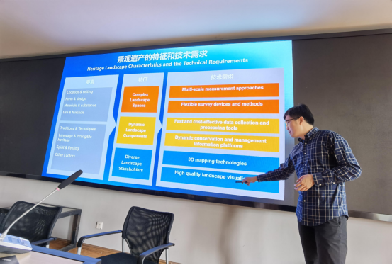 最后,杨晨博士向师生们介绍“同济大学风景遗产与文化景观保护创新团队”和开展的研究工作。通过多个案列向我们呈现了他们研究的主要内容。全面应用数字技术将为科学认知和保护中国文化景观遗产提供重要支持并助力我国传统风景文化的可持续发展及其向全世界的传播。