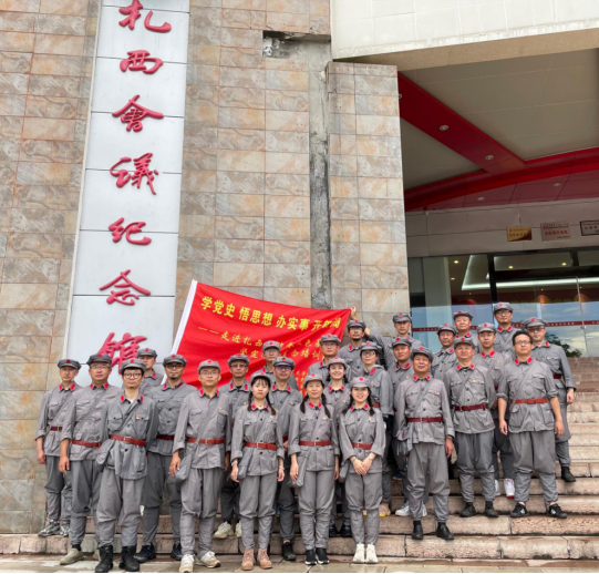 为深入学习领会习近平总书记在党史学习教育动员大会上的重要讲话和在庆祝中国共产党成立100周年大会重要讲话精神,全面贯彻落实公司党委关于开展党史学习教育相关部署要求,引领全体党员学史明理、学史增信、学史崇德、学史力行,2021年7月25日至27日,公司党政班子成员、科室系部负责人、党员教师等26人来到扎西,开展“赓续精神血脉·传承红色基因”党史学习教育现场学习体验活动,接受革命传统教育和精神洗礼。一同参与培训的还有艺术管理公司党总支6名教工党员、纪检处直属党支部5名教工党员、图书馆直属党支部11名教工党员。培训采取专题教学、现场教学、激情教学和体验教学等灵活多样的方式进行。