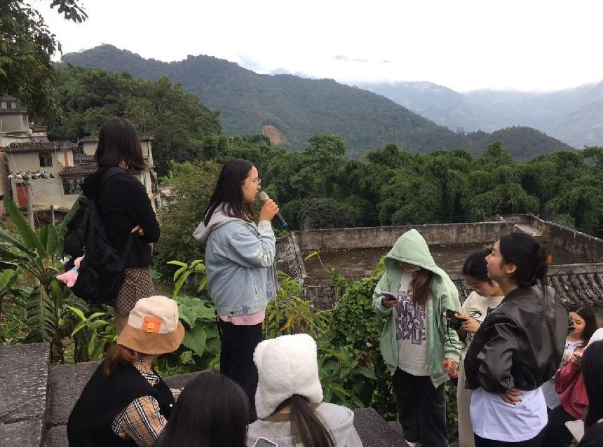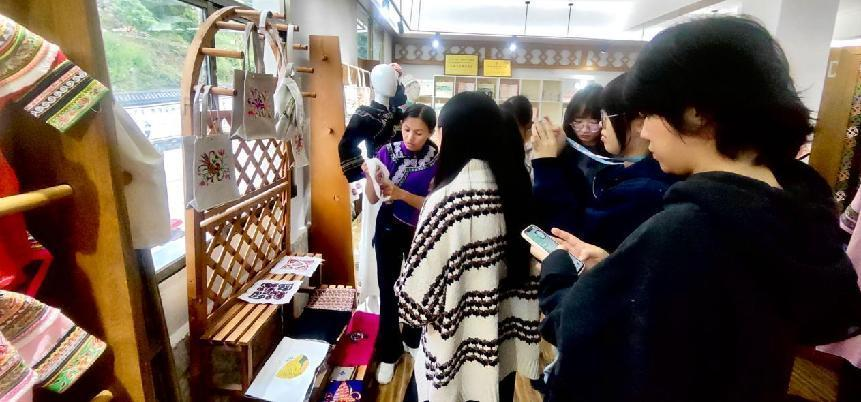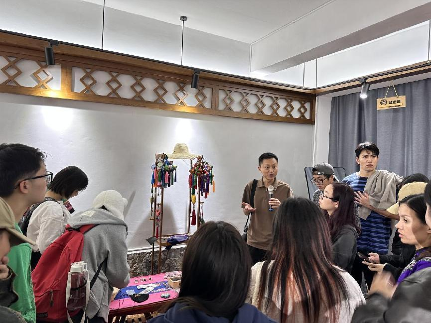 猛弄村非遗展示厅工作人员给同学们进行讲解