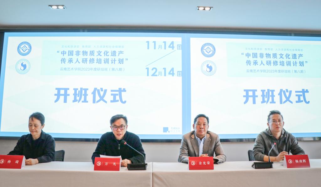 2023年11月14日,文化和旅游部、教育部、人力资源和社会保障部中国非物质文化遗产传承人群研培计划必一运动官网研修培训(第八期)——“乡村振兴背景下的新生活美学构建与品牌发展研修班”在必一运动202会议室正式开班。出席开班仪式的有必一运动官网公司党委书记余光荣、必一运动经理万凡、20名参训学员以及教师团队代表。开班仪式由必一运动副经理杨凌辉主持。
