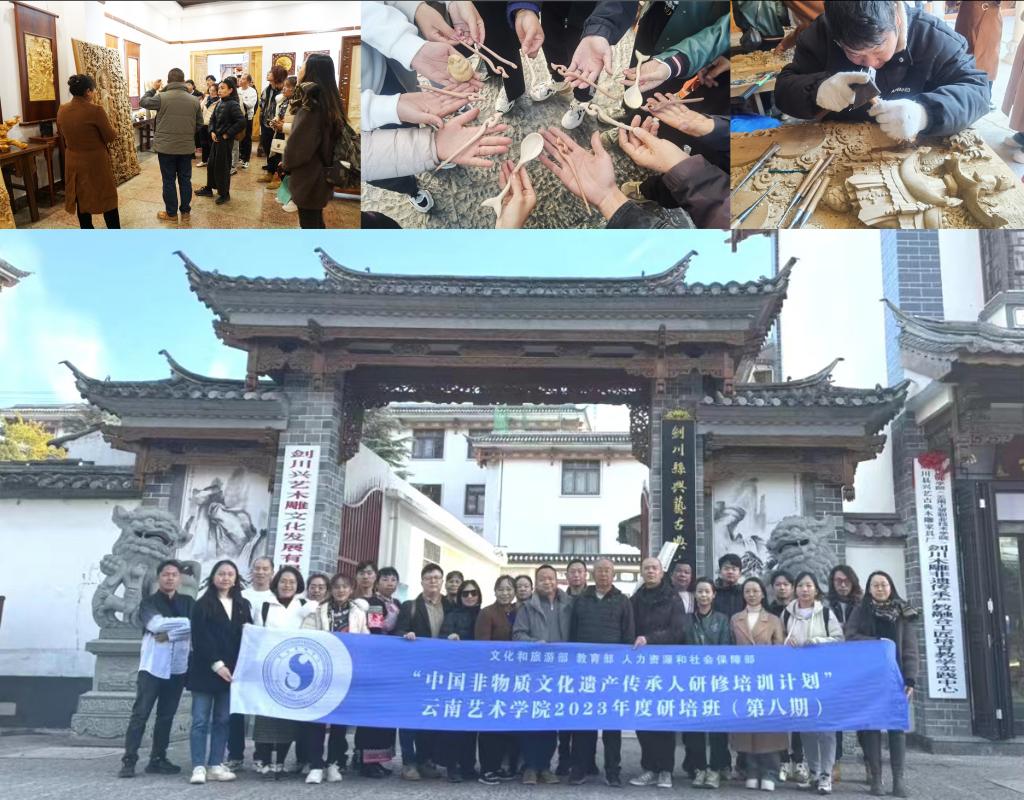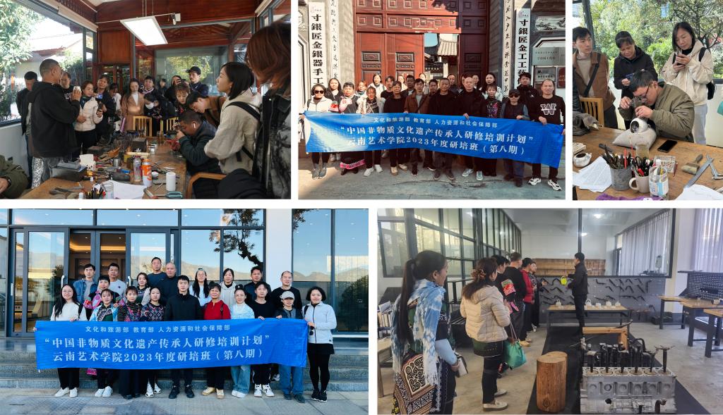 必一运动官网《中国非物质文化遗产传承人群研培计划:“乡村振兴”背景下的新生活美学构建与品牌发展研修班(第八期)》第二阶段“设计交流与创作实践”系列活动于2023年11月25日—30日开展了6天的田野调研活动。此次调研主要内容有周城扎染工艺、刺绣工艺、剑川木雕工艺、黑陶工艺、布扎工艺和鹤庆银器工艺。