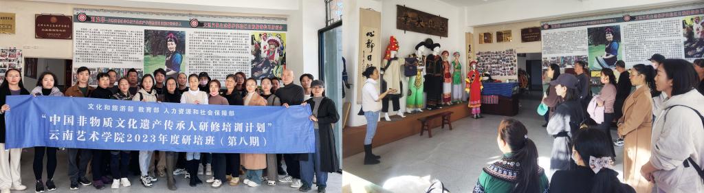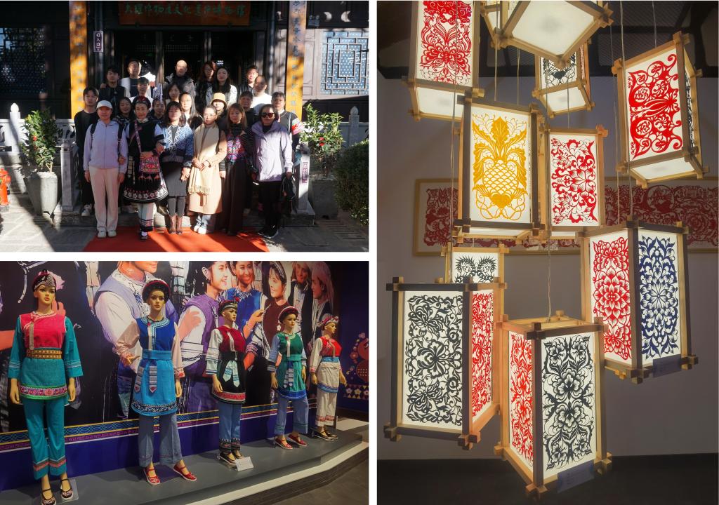 11月26日上午,研培团队来到大理古城,在大理州非物质文化遗产博物馆参加国家级大理文化生态保护区大理州非遗展示中心非遗展示展演活动。同时参观了馆藏在展的木雕、石雕、扎染、剪纸、甲马银器、瓦猫、布扎、白族服饰和刺绣等代表性非遗作品,观看了白族杖鼓舞、巍山彝族打歌等民族表演。