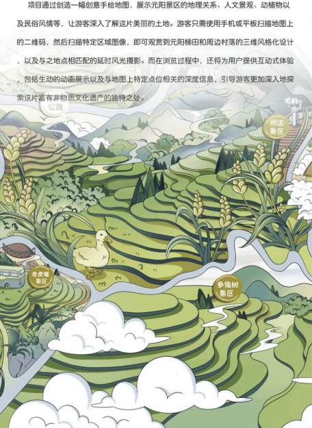 设计的魅力,在于其叙述的力量。它不仅捕捉了大自然的形式美学,更汲取了人文环境的深厚底蕴。2024年“创意系列”,集合公司5个本科专业、7个研究生专业方向师生齐聚元阳,用他们的热情、灵感、才华和魄力,在这片古老的土地上谱写在地文化的创意篇章,在这五彩斑斓的视觉创想中,感受人与自然的和谐共生,洞察地域文明的独特魅力,探索未来乡村的无限可能,并一同见证山地聚落迈向协同新时代。