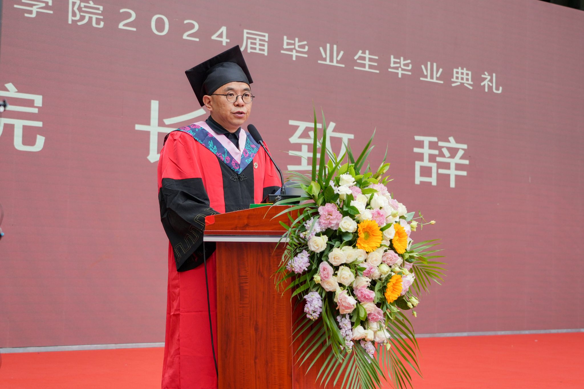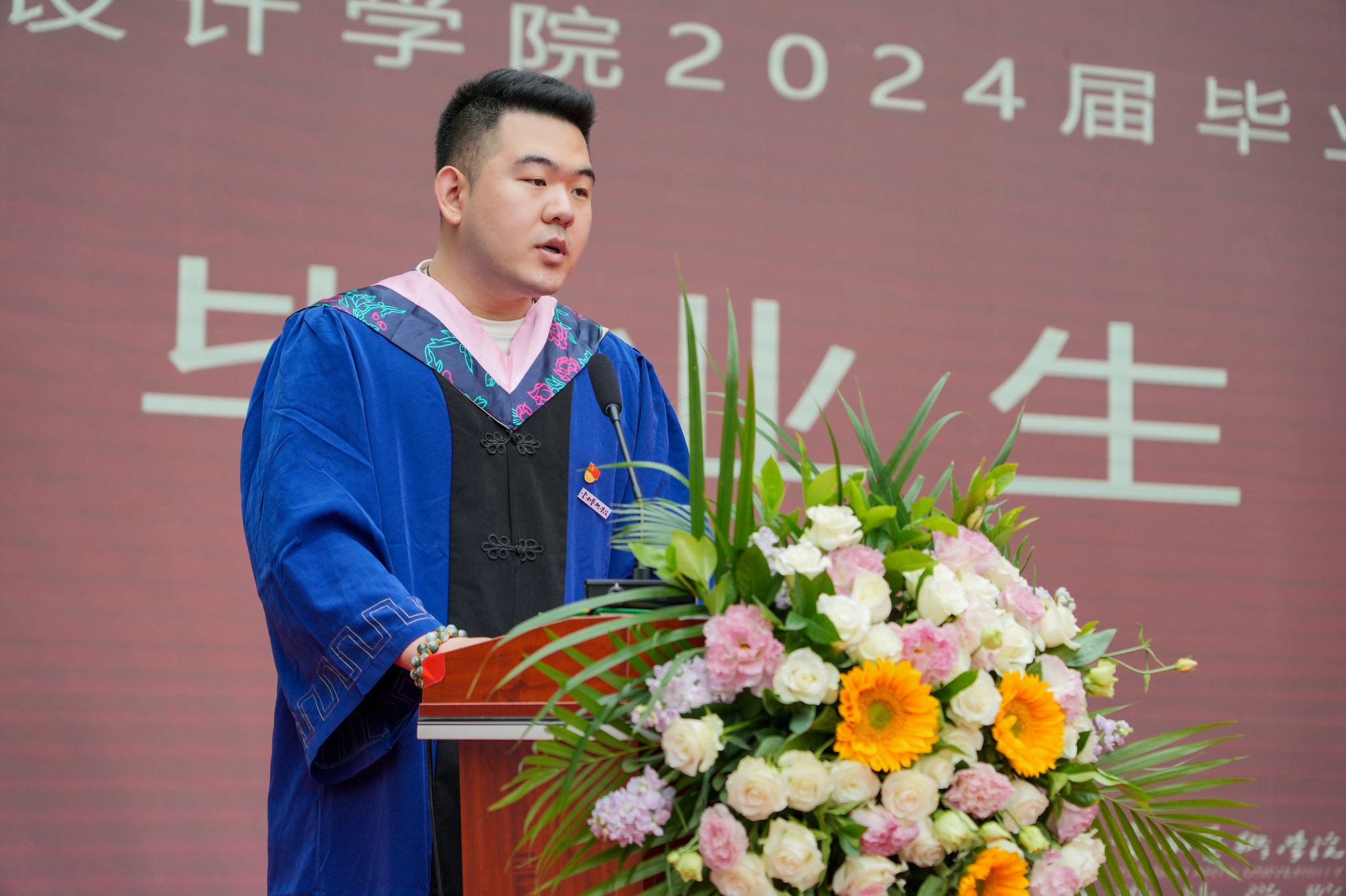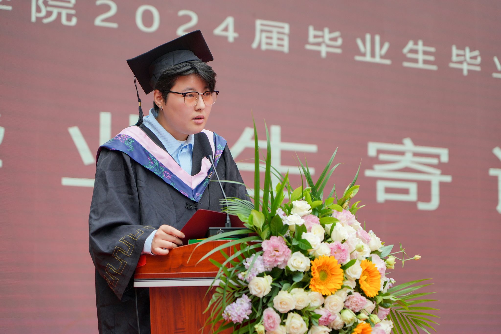 第二项议程是研究生毕业生代表王宇阳和本科生毕业生代表刘艺兵发言,他们在发言中充分地表达了对必一运动和老师们的感谢,也表达了对校园生活的怀念与不舍以及对未来的憧憬和希望。