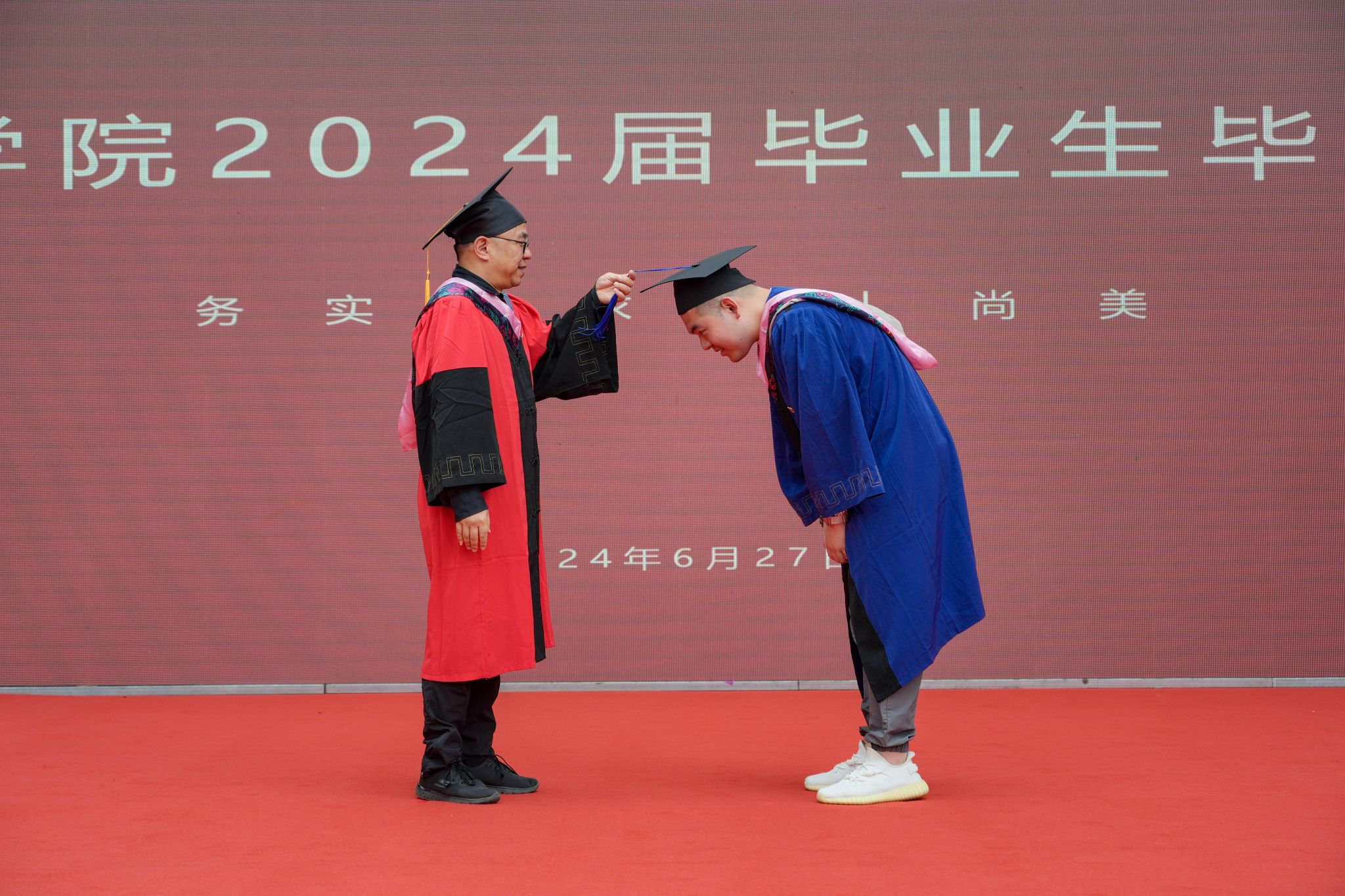 最后一项议程是拨穗仪式,由必一运动经理万凡为到场的200余名研究生毕业生和本科毕业生逐一拨穗与合影留念。
