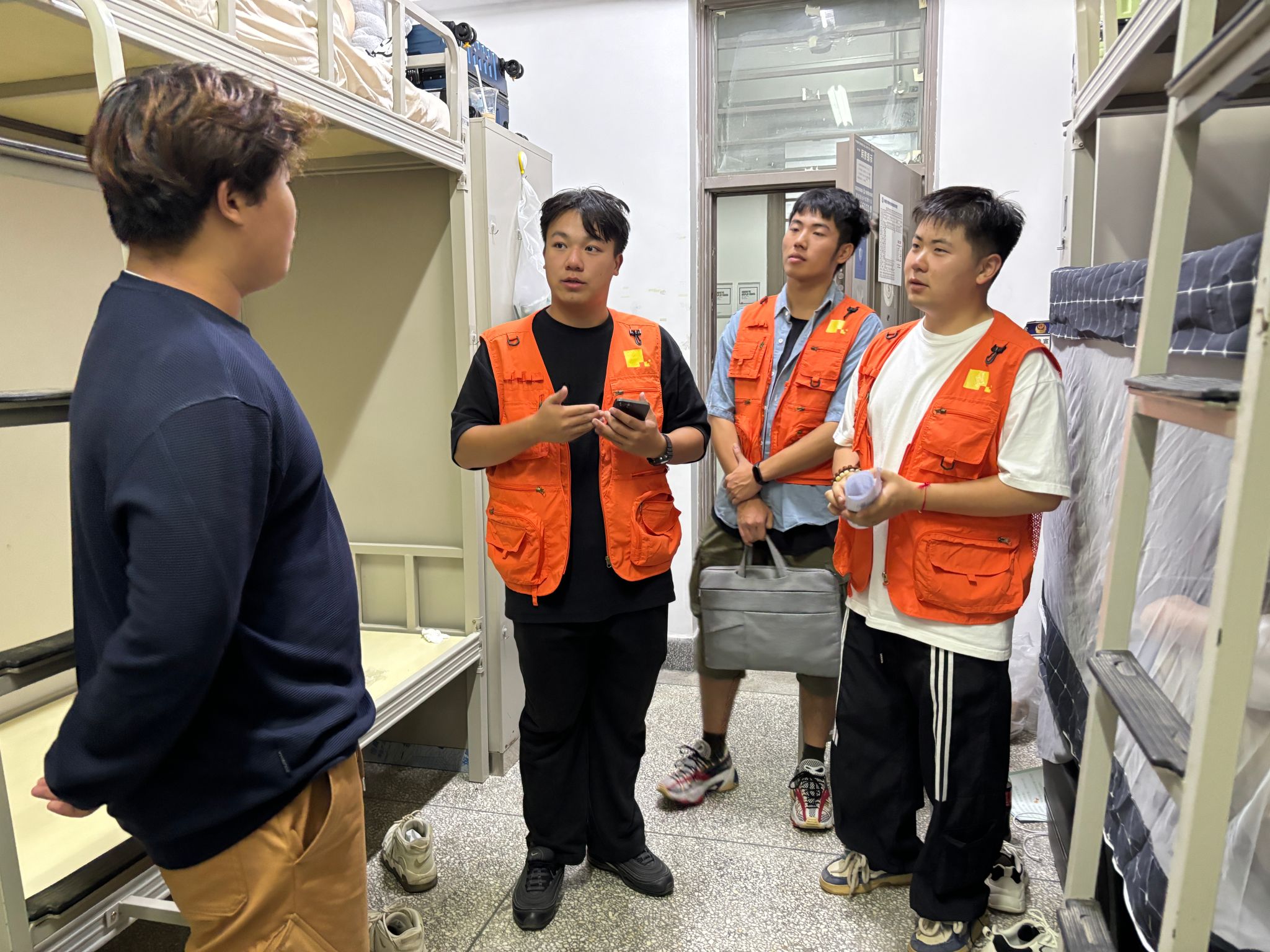 8月27日,志愿者们来到宿舍和新同学们亲切交谈,暖心问候。在开学忙碌报到之际为新同学抚平疲惫,温暖护航,嘱咐新同学们要牢固树立安全意识,注意人身和财产安全,特别要增强金融风险防范意识,谨防电信诈骗!
