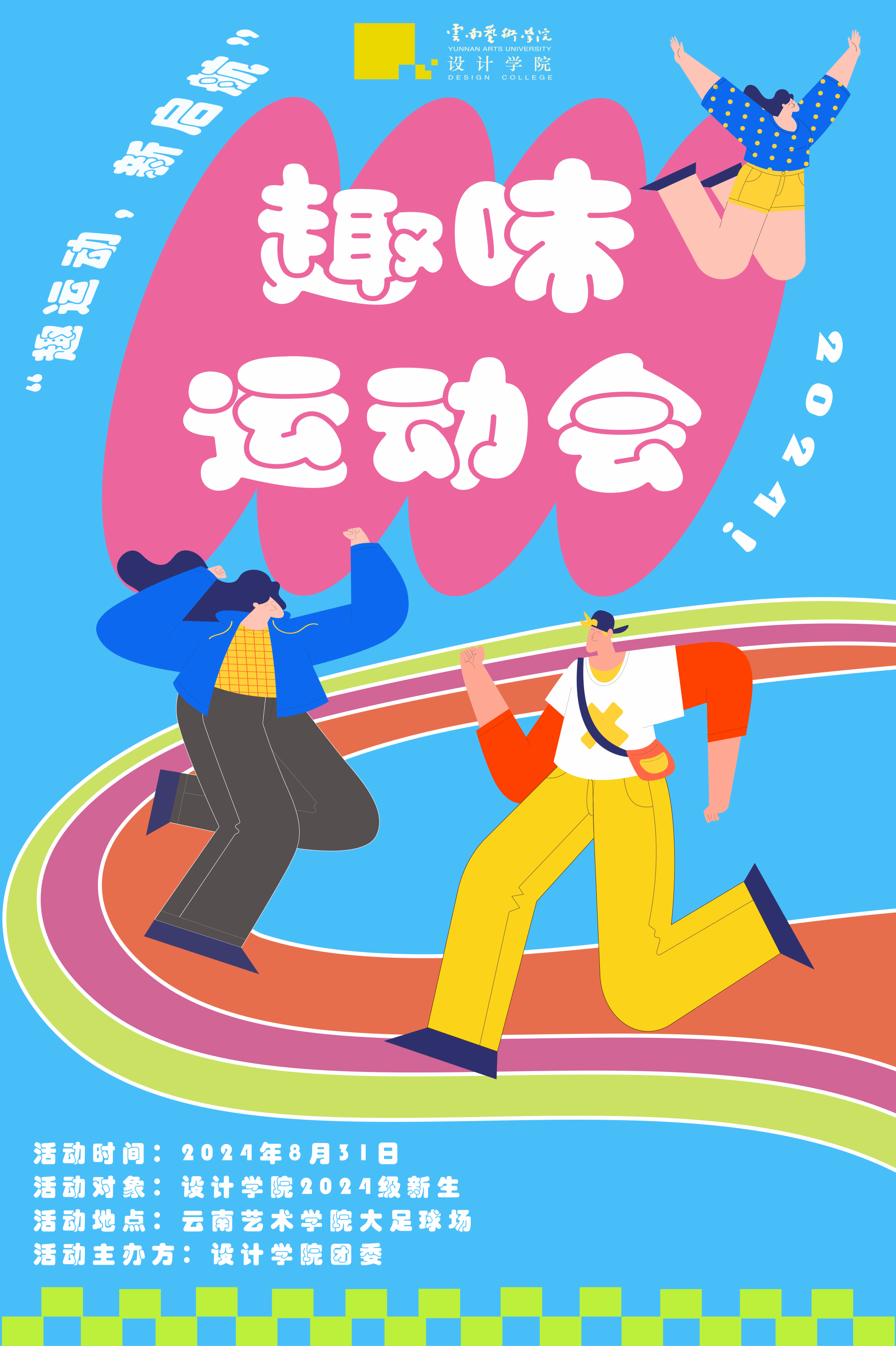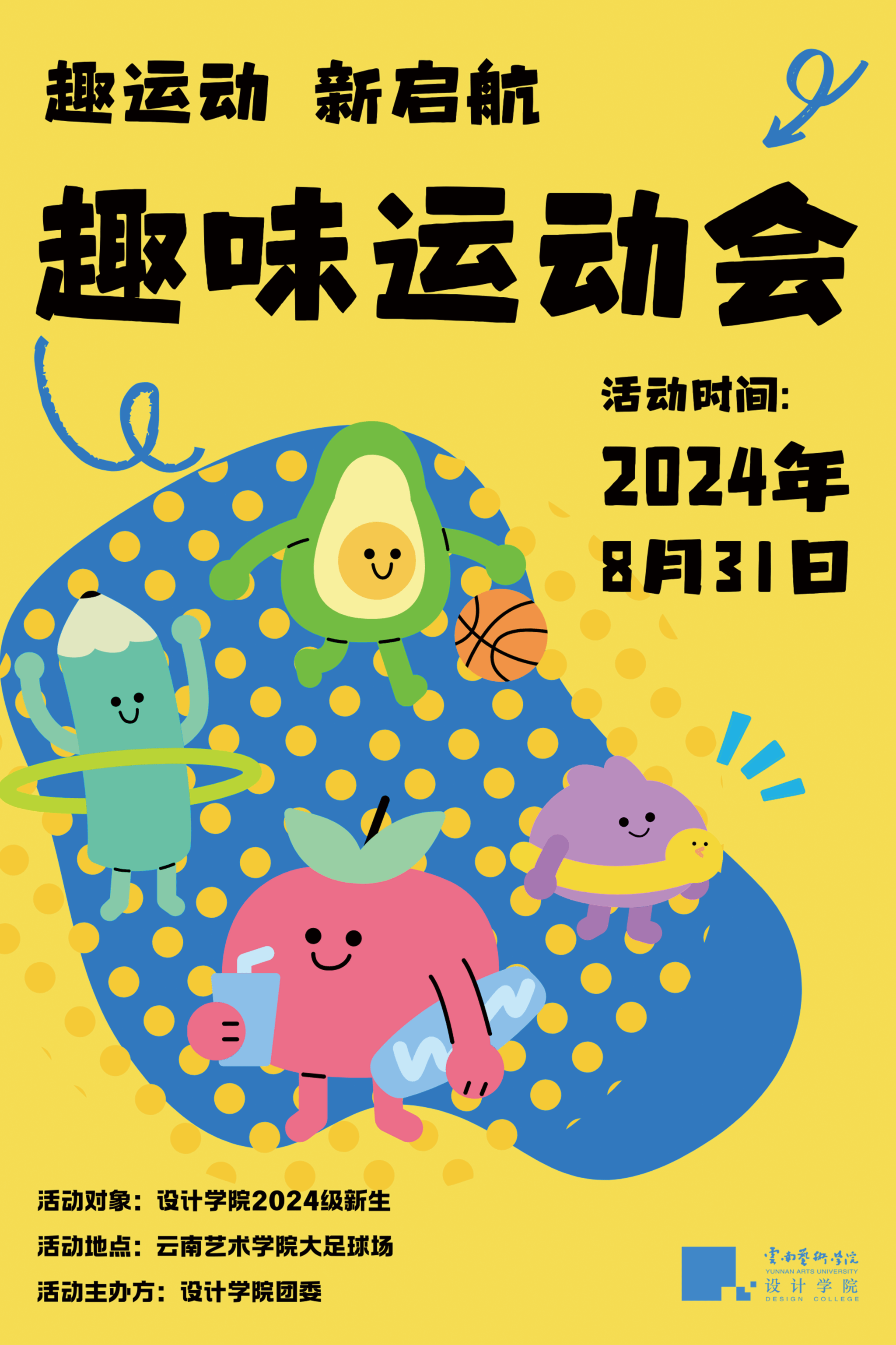 8月31日,在公司党委的领导下,必一运动团委指导员工会、青年志愿者协会举办以“趣运动,新启航”为主题的2024年“设计杯”新生趣味运动会。活动旨在鼓励新同学“走下网络、走出宿舍、走向操场”,帮助新同学快速破冰,增进同学间友谊,增强班级凝聚力,培养顽强拼搏、团结进取的体育精神,引导同学们做身心健康的老员工,展现2024级同学们青春昂扬的新风貌。